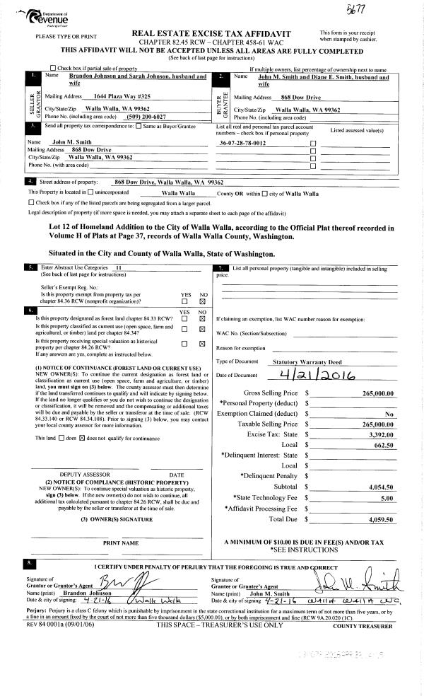 | 1 | 04/22/2016 | SWD | STATUTORY WARRANTY DEED | JOHNSON BRANDON & SARAH | SMITH JOHN M & DIANE E | | | $265,000.00 | 130078 | 2016-03002 |
