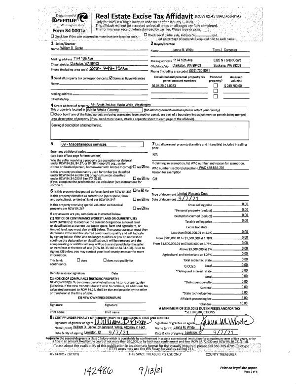 | 1 | 10/07/2021 | DEED | DEED | GERKE WILLIAM | WHITE JANNA M | | | $0.00 | 142486 | 2021-12215 |