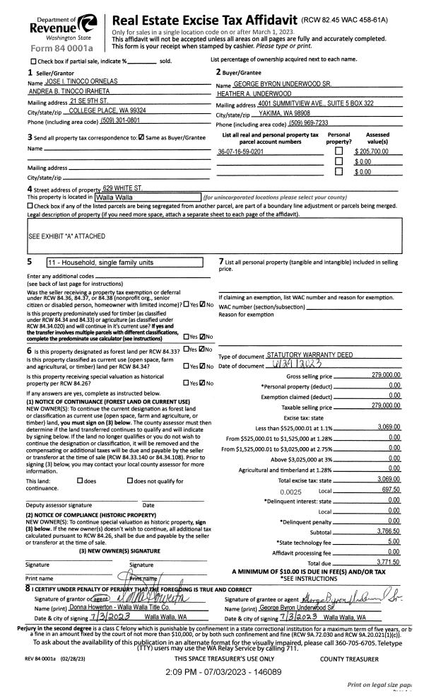 | 1 | 07/03/2023 | SWD | STATUTORY WARRANTY DEED | ORNELAS JOSE I TINOCO | UNDERWOOD GEORGE BYRON SR & HEATHER A | | | $279,000.00 | 146089 | 2023-03734 |
