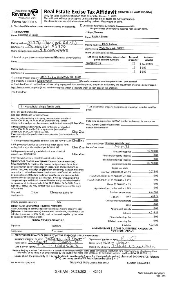 | 1 | 07/23/2021 | SWD | STATUTORY WARRANTY DEED | BUGAS STEPHANIE M | BROWN ROBIN A | | | $297,500.00 | 142101 | 2021-08964 |