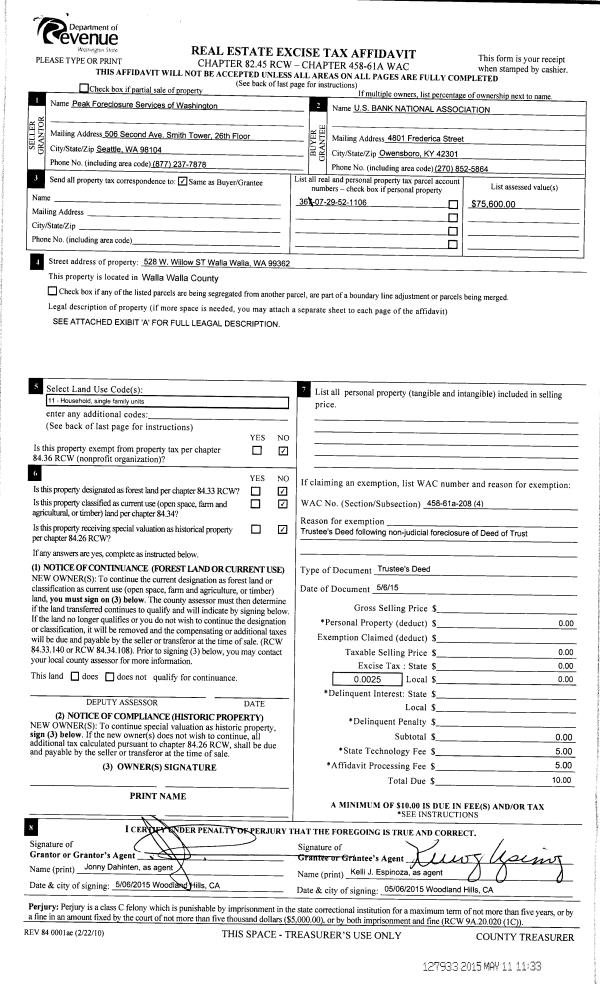 | Mailing Address: | VANESSA FERNANDEZ 528 WILLOW ST WALLA WALLA, WA 99362 | % Ownership: | 100.0000000000% |
