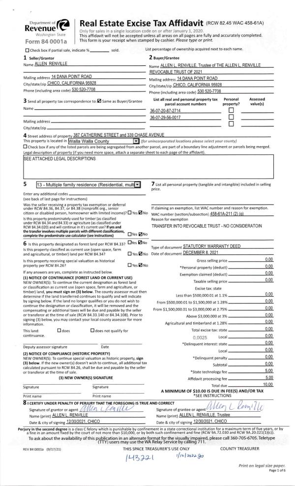 | 1 | 12/08/2021 | SWD | STATUTORY WARRANTY DEED | RENVILLE ALLEN | ALLEN L RENVILLE REVOCABLE TRUST | 2 PARCELS | | $0.00 | 143221 | 2022-00320 |
