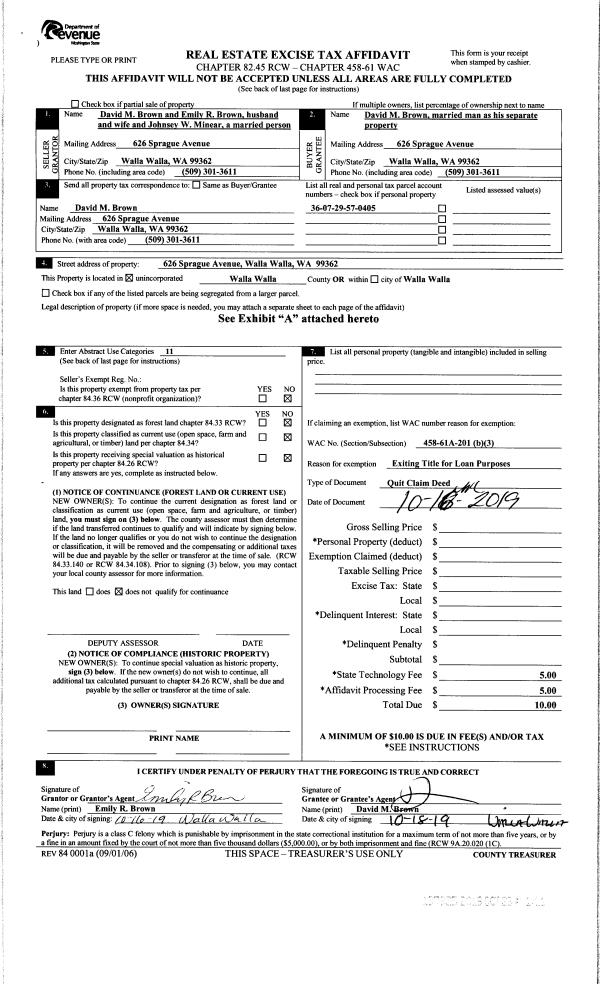 | Mailing Address: | 626 SPRAGUE AVE WALLA WALLA, WA 99362 | % Ownership: | 100.0000000000% |