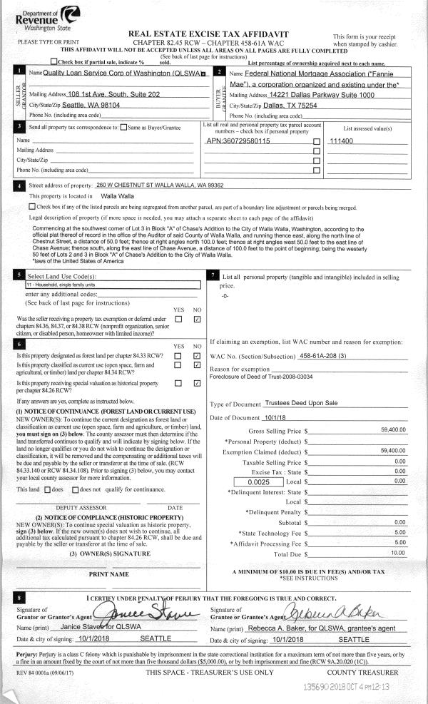 | Mailing Address: | 260 W CHESTNUT ST WALLA WALLA, WA 99362 | % Ownership: | 100.0000000000% |