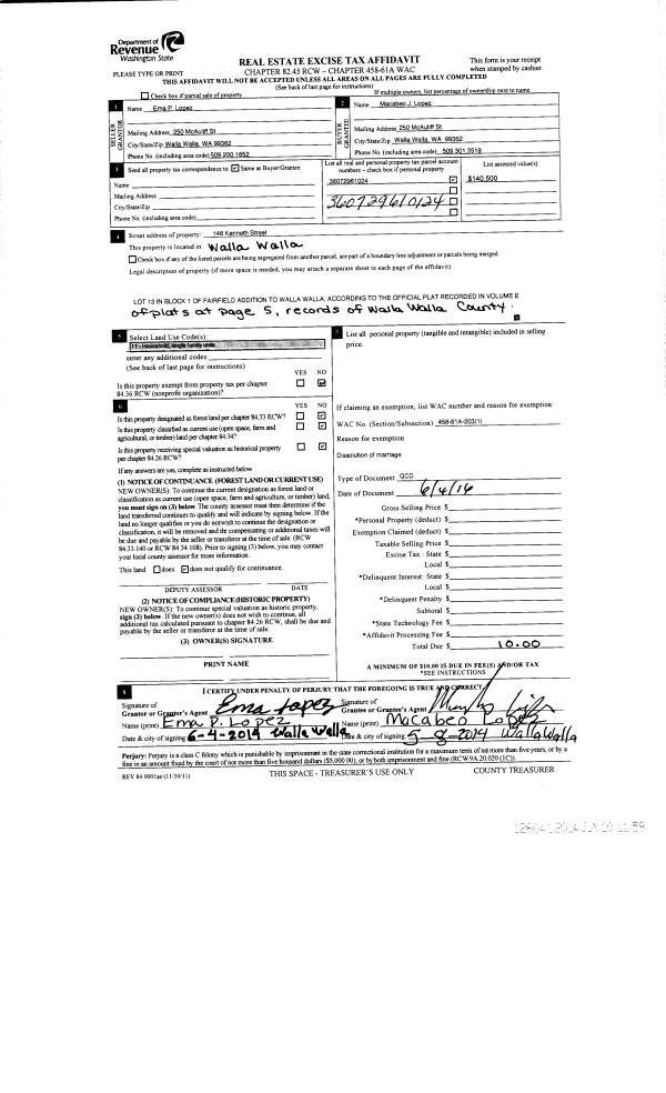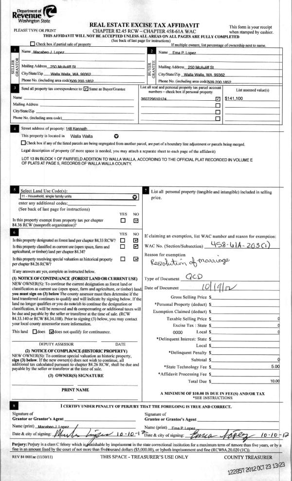 | 3 | 10/19/2012 | WARRANTY D | WARRANTY DEED | LOPEZ MACABEO J & EMA P | LOPEZ EMA P | | | | 0 | CC #12-3--00197-3 |