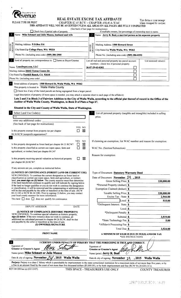 | 2 | 11/24/2015 | WARRANTY D | WARRANTY DEED | SHMATT MIKE | BEAL JERRY R | | | | 129273 | 2015-10324 |