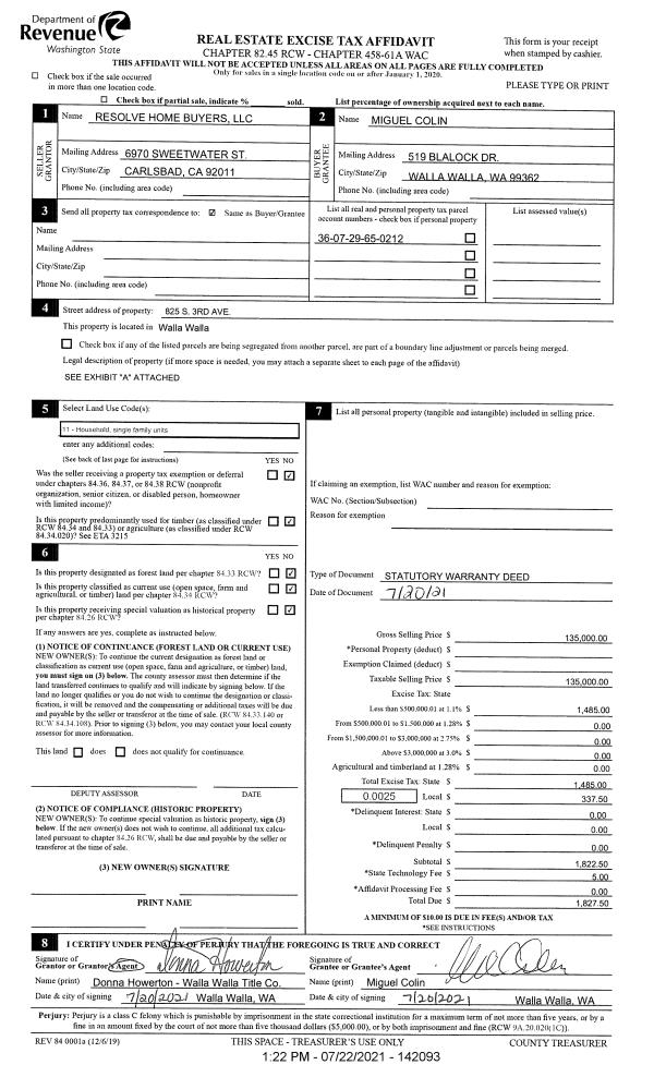 | 5 | 07/22/2021 | SWD | STATUTORY WARRANTY DEED | RESOLVE HOME BUYERS LLC | COLIN MIGUEL | | | $135,000.00 | 142093 | 2021-08916 |