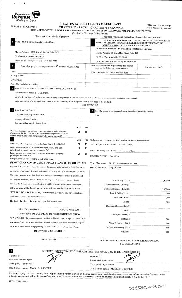 | 3 | 05/28/2015 | TRUSTEES D | TRUSTEE'S DEED | HUTSELL NOVA R JR | BANK OF NEW YORK MELLON | | 2-PARCELS | $57,800.00 | 128055 | 2015-04514 |