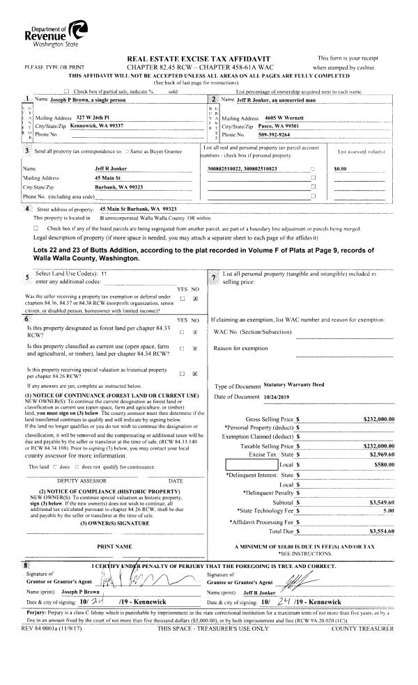| 1 | 10/25/2019 | SWD | STATUTORY WARRANTY DEED | BROWN JOSEPH P | JONKER JEFF R | | 2-PARCELS | $232,000.00 | 137953 | 2019-08637 |