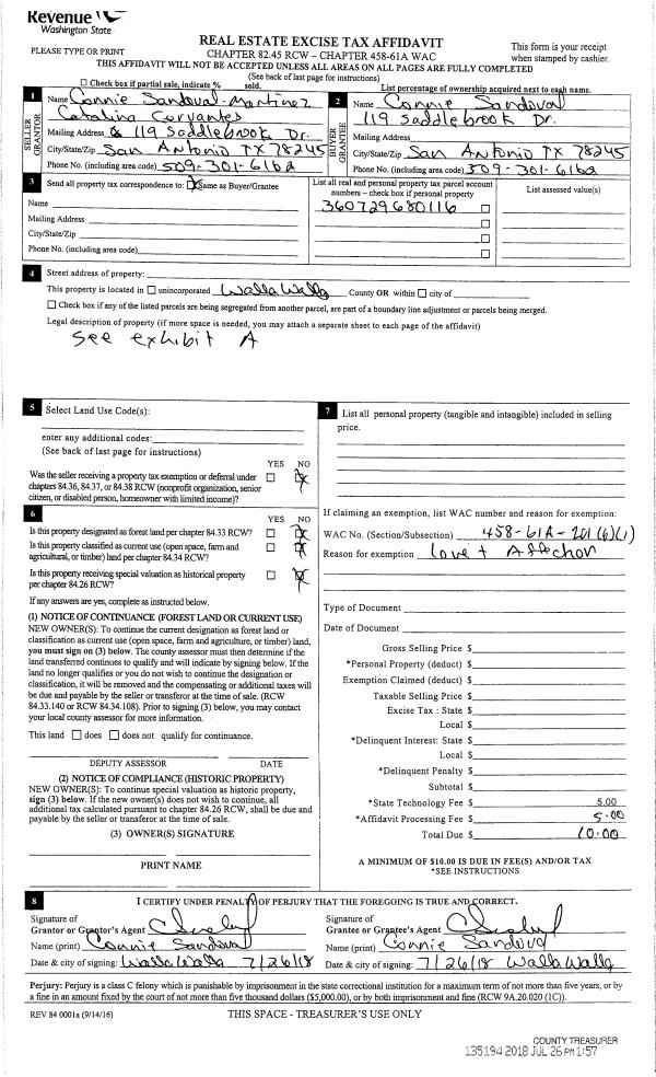 | 1 | 07/26/2018 | QCD | QUIT CLAIM DEED | SANDOVAL CONNIE M | SANDOVAL CONNIE M | | | $0.00 | 135194 | 2018-06056 |