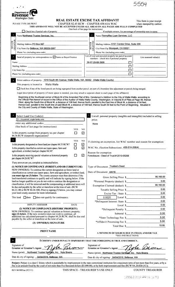 | Mailing Address: | 1018 S 4TH AVE WALLA WALLA, WA 99362 | % Ownership: | 100.0000000000% |