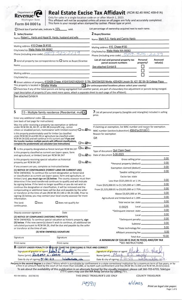 | Mailing Address: | 410 CHASE AVE #100 WALLA WALLA, WA 99362 | % Ownership: | 100.0000000000% |