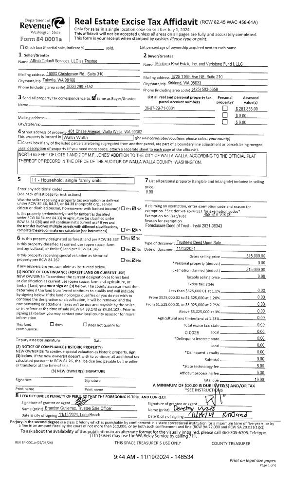 | 3 | 11/19/2024 | TRUSTEES D | TRUSTEE'S DEED | CHANDLER MURIEL L | MONTANA REAL ESTATE INC | | | $315,000.00 | 148534 | 2024-06701 |
