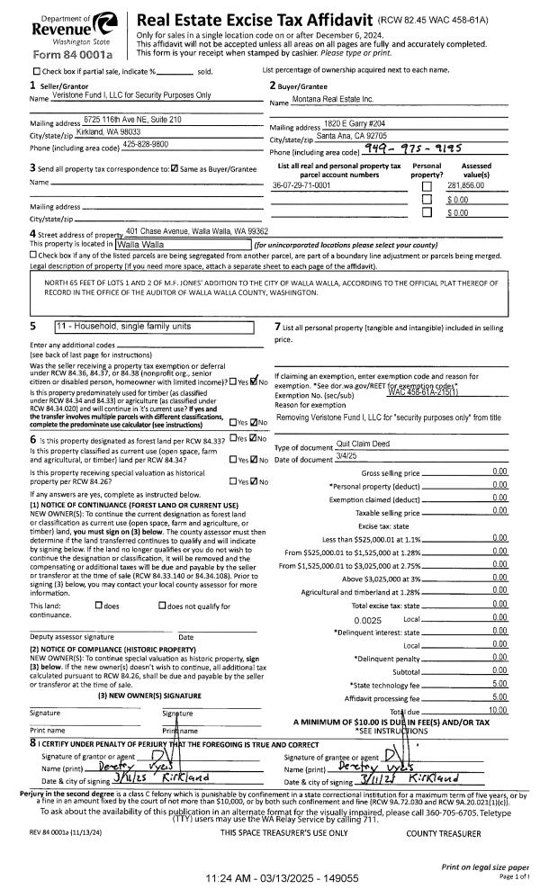 | 2 | 03/13/2025 | QCD | QUIT CLAIM DEED | MONTANA REAL ESTATE INC | MONTANA REAL ESTATE INC | | | | 149055 | 2025-01315 |