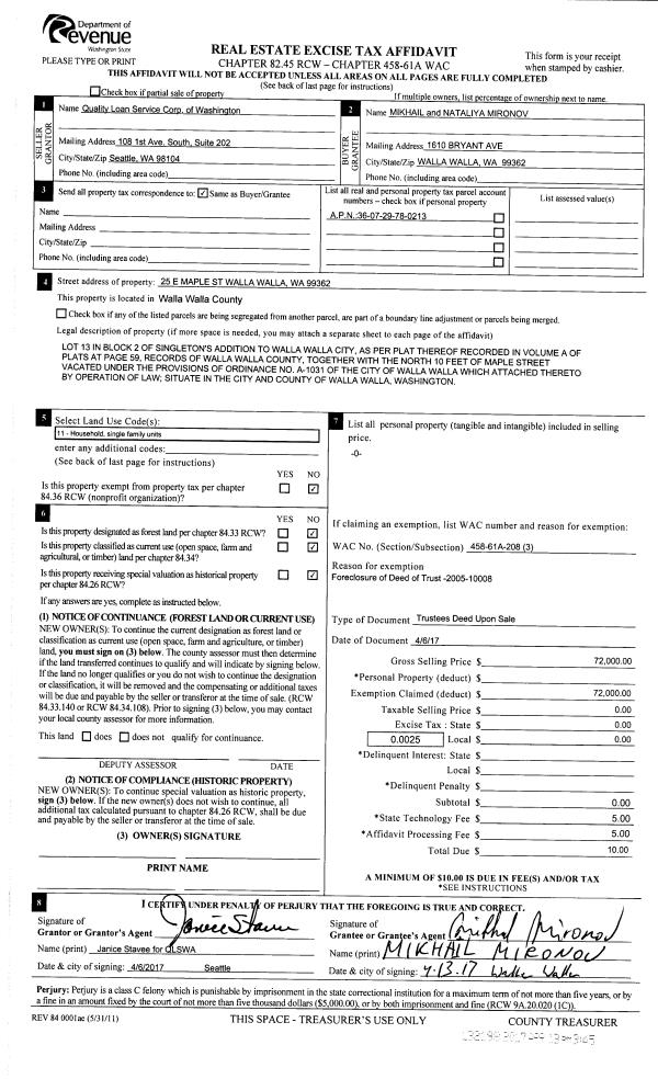 | 3 | 04/13/2017 | TRUSTEES D | TRUSTEE'S DEED | JORDAN RAYMOND S | MIRONOV MIKHAIL & NATALIYA | | | $72,000.00 | 132198 | 2017-02792 |
