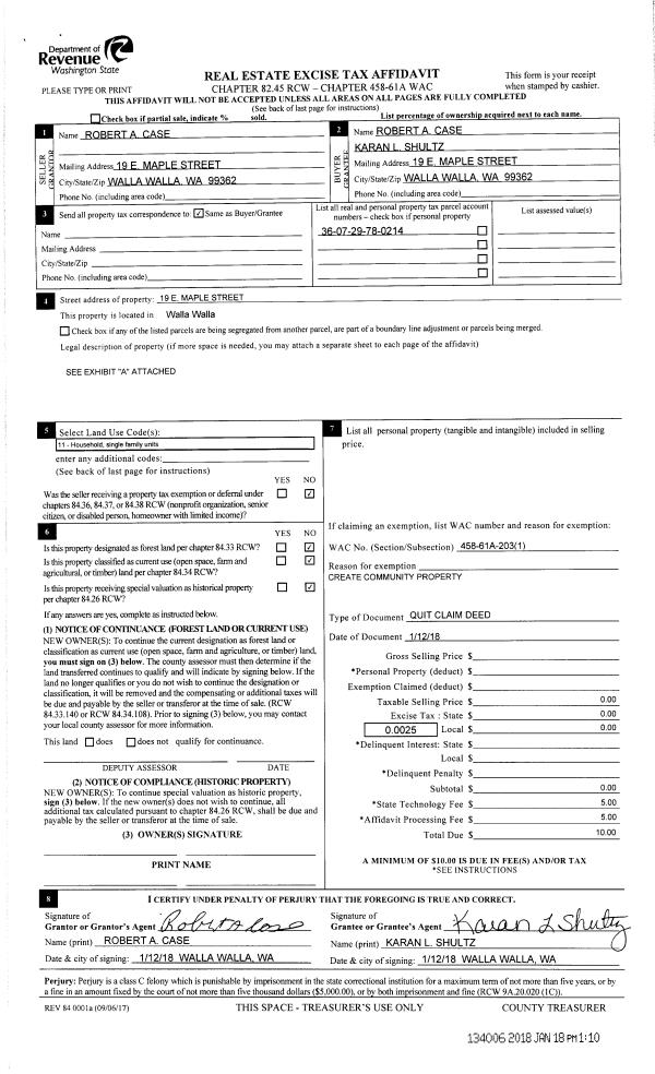 | 3 | 01/12/2018 | QCD | QUIT CLAIM DEED | CASE ROBERT A | CASE ROBERT A | | | $0.00 | 134006 | 2018-00500 |