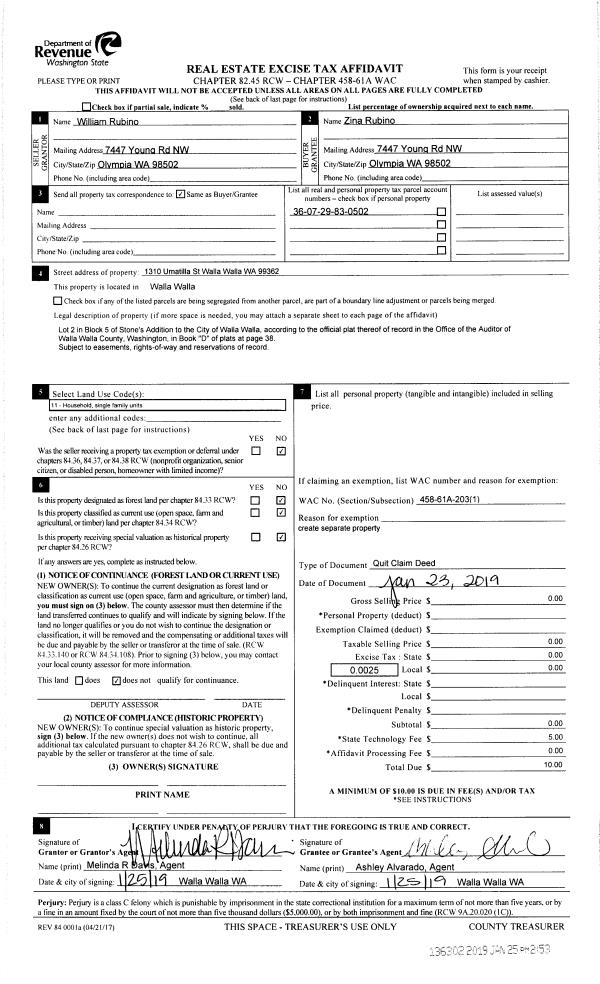 | 7 | 01/25/2019 | SWD | STATUTORY WARRANTY DEED | JENSEN RON K | RUBINO ZINA | | | $70,000.00 | 136301 | 2019-00536 |