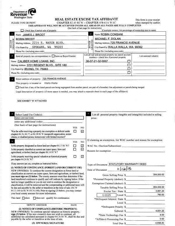 | 1 | 11/13/2015 | SWD | STATUTORY WARRANTY DEED | BRODT JAMES J | CONSANI ROBIN | | | $304,000.00 | 129190 | 2015-09896 |