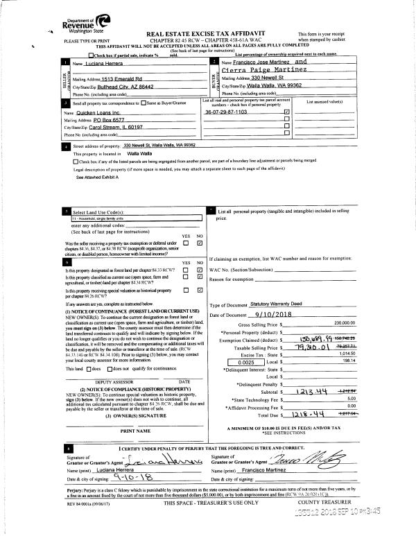 | 2 | 09/10/2018 | SWD | STATUTORY WARRANTY DEED | POOLER LUCIANA | MARTINEZ FRANCISCO JOSE & CIERRA PAIGE | | | $79,310.00 | 135512 | 2018-07538 |