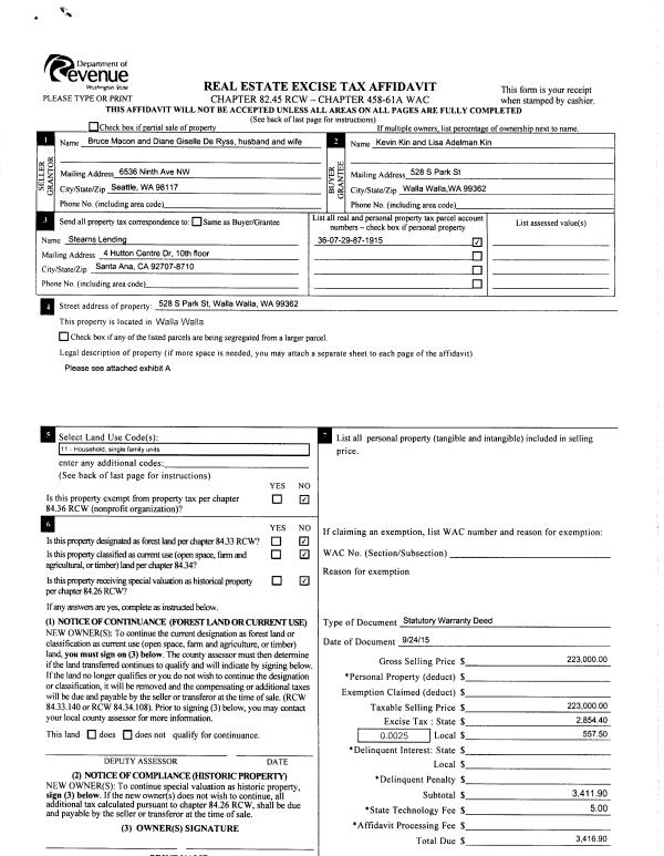 | Mailing Address: | 528 S PARK ST WALLA WALLA, WA 99362 | % Ownership: | 100.0000000000% |