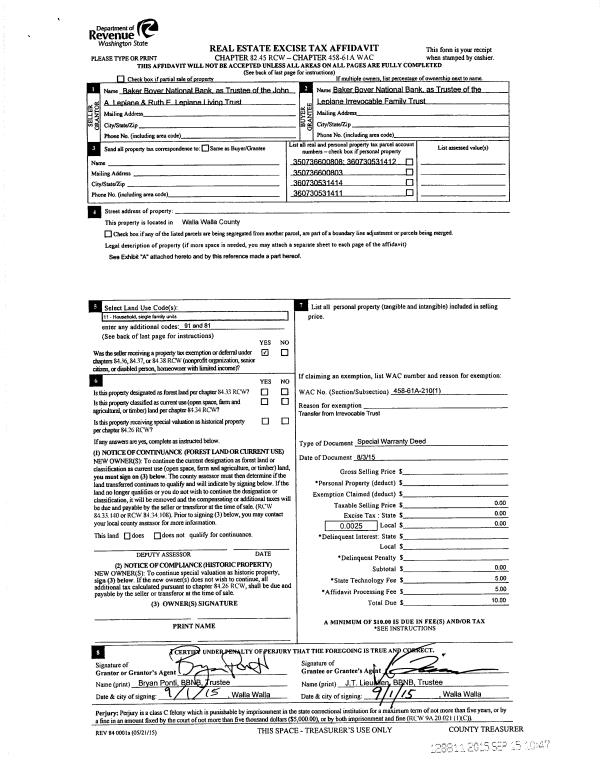 | 1 | 09/01/2015 | SWP | Special Warranty Deed | LEPIANE JOHN A | LEPIANE IRREVOCABLE FAMILY TRUST | 5 PARCELS | | $0.00 | 128811 | 2015-08052 |