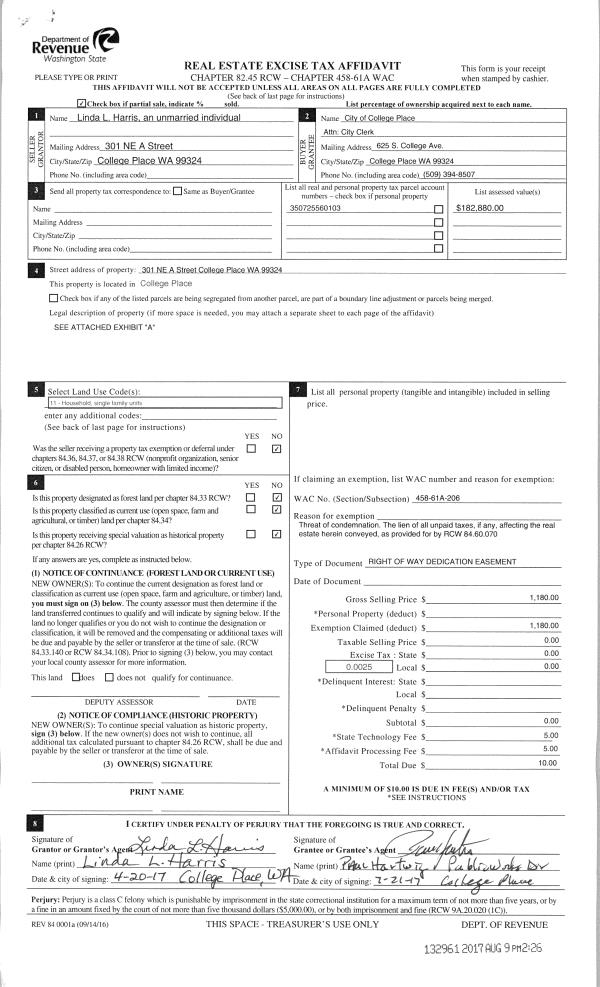 | 2 | 04/06/2017 | SWD | STATUTORY WARRANTY DEED | WALLA WALLA LLC | SCHWARTZ REVOCABLE TRUST | | 4-PARCELS | $1,300,000.00 | 132167 | 2017-02603 |