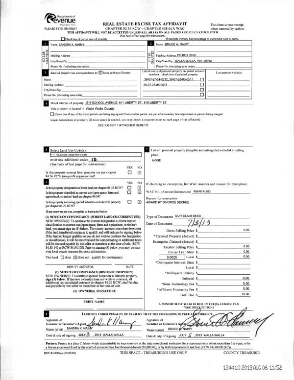 | 1 | 08/06/2013 | WARRANTY D | WARRANTY DEED | NAIMY BRUCE & SANDRA | NAIMY BRUCE A | | | | 124410 | 2013-07974 |