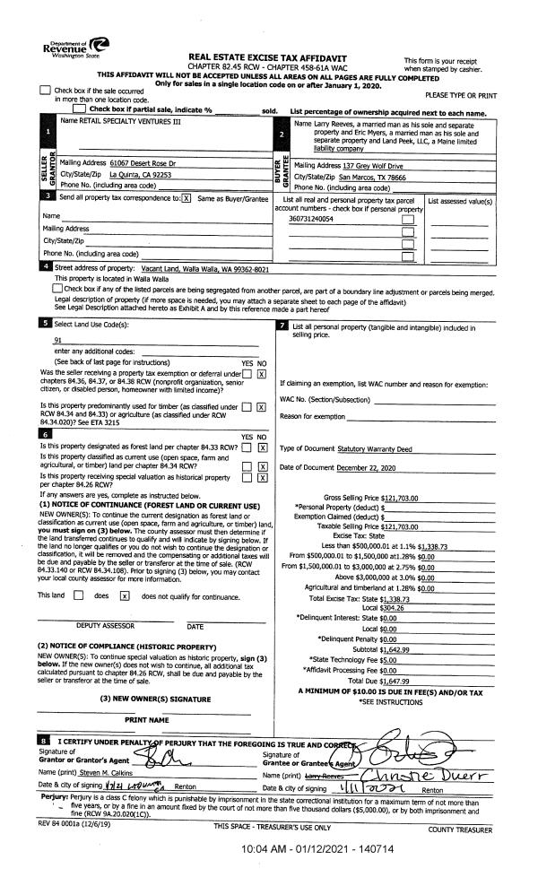 | 2 | 01/12/2021 | SWD | STATUTORY WARRANTY DEED | RETAIL SPECIALTY VENTURES III | REEVES LARRY | | | $121,703.00 | 140714 | 2021-00477 |