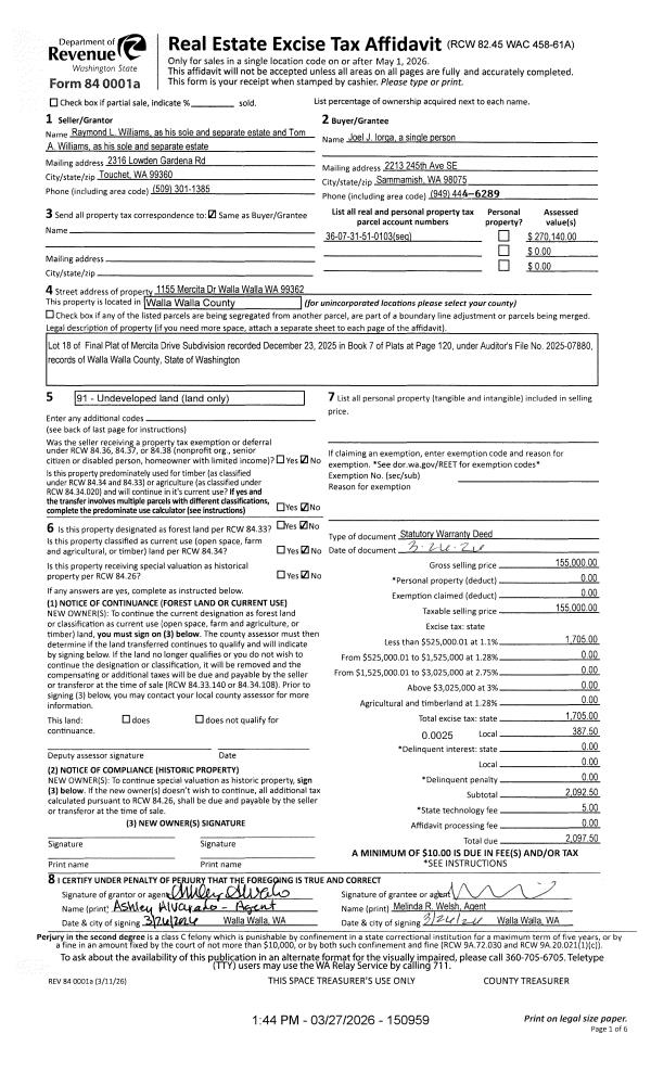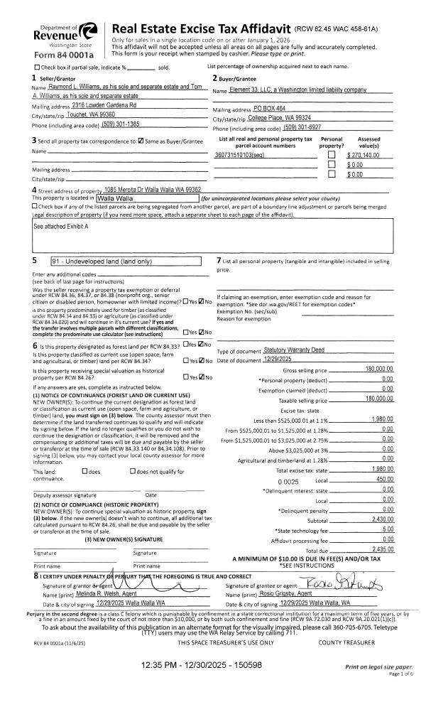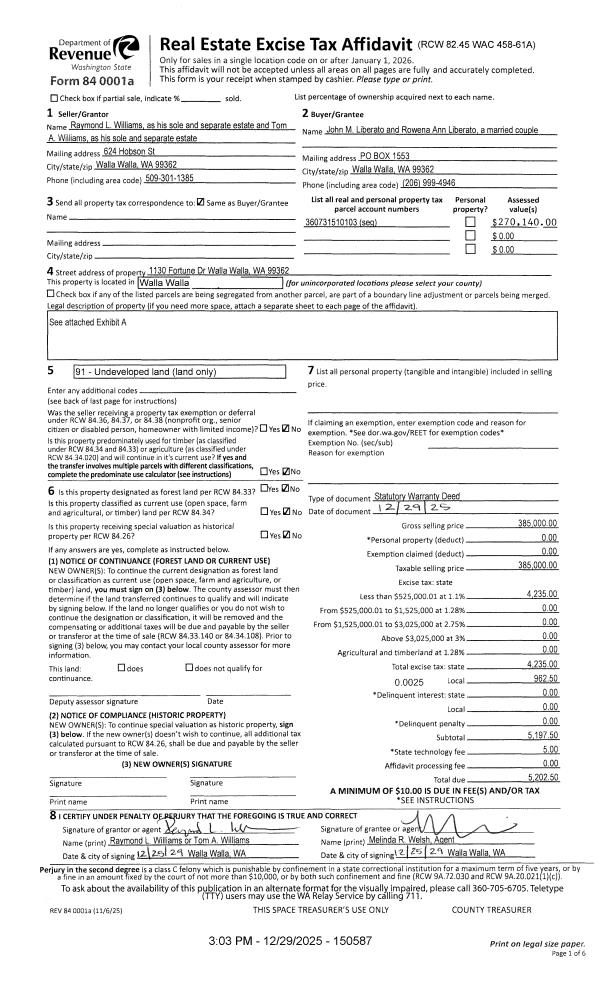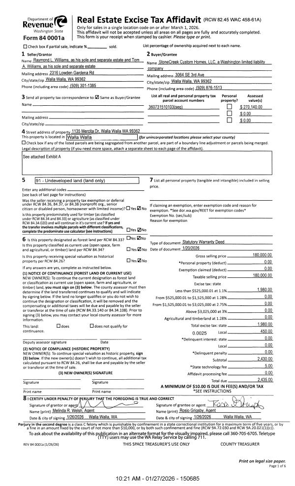 | Mailing Address: | 624 HOBSON ST WALLA WALLA, WA 99362 | % Ownership: | 100.0000000000% |