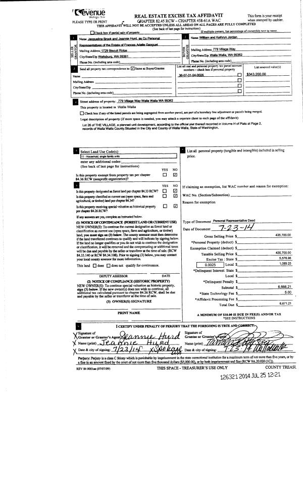 | 1 | 07/25/2014 | DPR | DEED OF PERSONAL REPRESENTATIVE | GANGUET F ADELLE | JORDAN WILLIAM & KATHRYN | | | $435,700.00 | 126321 | 2014-05255 |