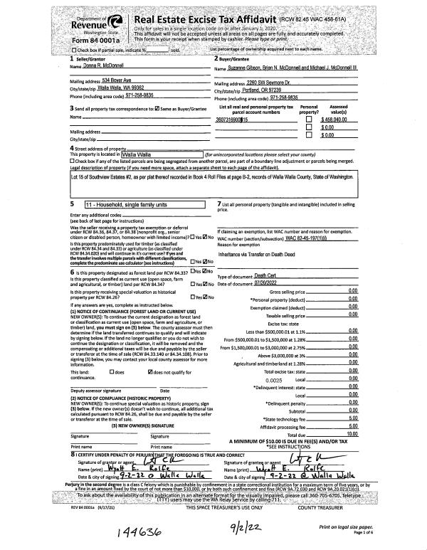| 3 | | TODD | TRANSFER ON DEATH DEED | MC DONNELL DONNA ESTATE OF | MC DONNELL MICHAEL J ET AL | | | | 0 | 2021-07573 |