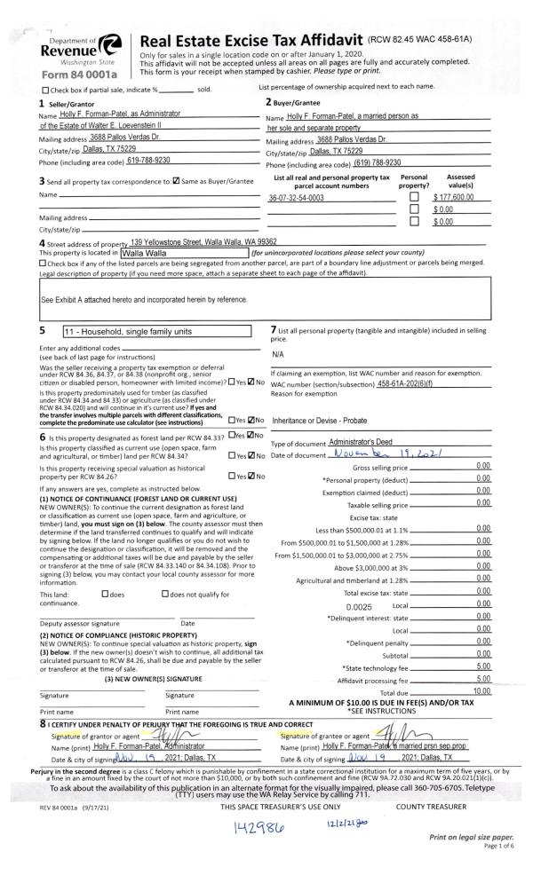 | 4 | 11/19/2021 | ADMD | ADMINISTRATOR'S DEED | LOEVENSTEIN WALTER E II | FORMAN PATEL HOLLY F | | | $0.00 | 142986 | 2021-14245 |