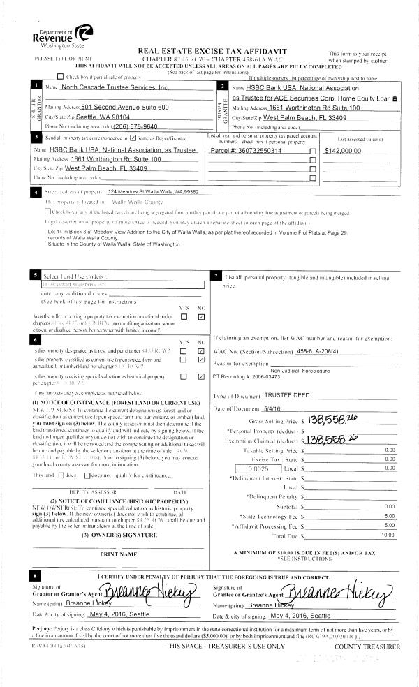 | Mailing Address: | 124 MEADOW ST WALLA WALLA, WA 99362 | % Ownership: | 100.0000000000% |