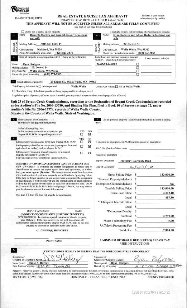 | Mailing Address: | 2113 LEONARD DR WALLA WALLA, WA 99362 | % Ownership: | 100.0000000000% |