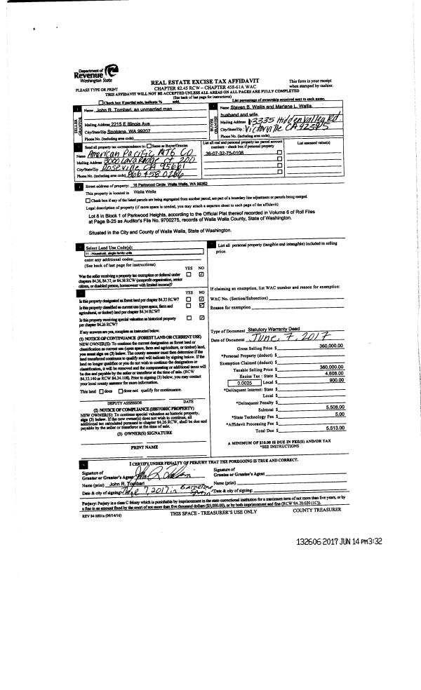 | Mailing Address: | 16 PARKWOOD CIRCLE WALLA WALLA, WA 99362 | % Ownership: | 100.0000000000% |
