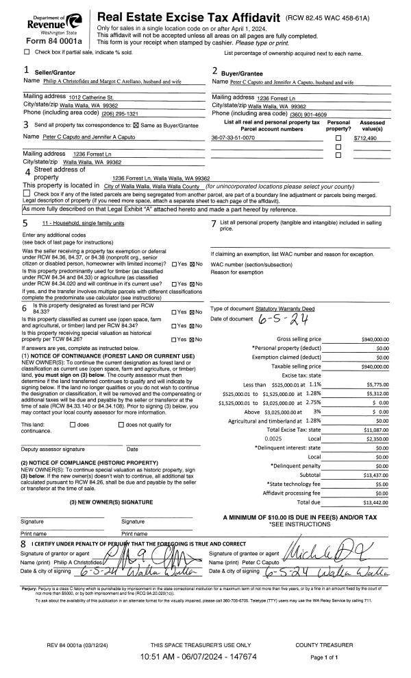 | 1 | 06/07/2024 | SWD | STATUTORY WARRANTY DEED | CHRISTOFIDES PHILIP A | CAPUTO PETER C & JENNIFER A | | | $940,000.00 | 147674 | 2024-03006 |