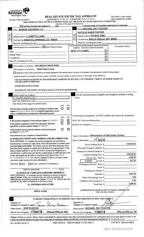 | 3 | 11/30/2018 | REAL ESTAT | REAL ESTATE CONTRACT | BONNIE ESCAPES LLC | FOSTER MICHAEL RAY & NATALIE ANNE | | | $255,000.00 | 136014 | 2018-09919 |