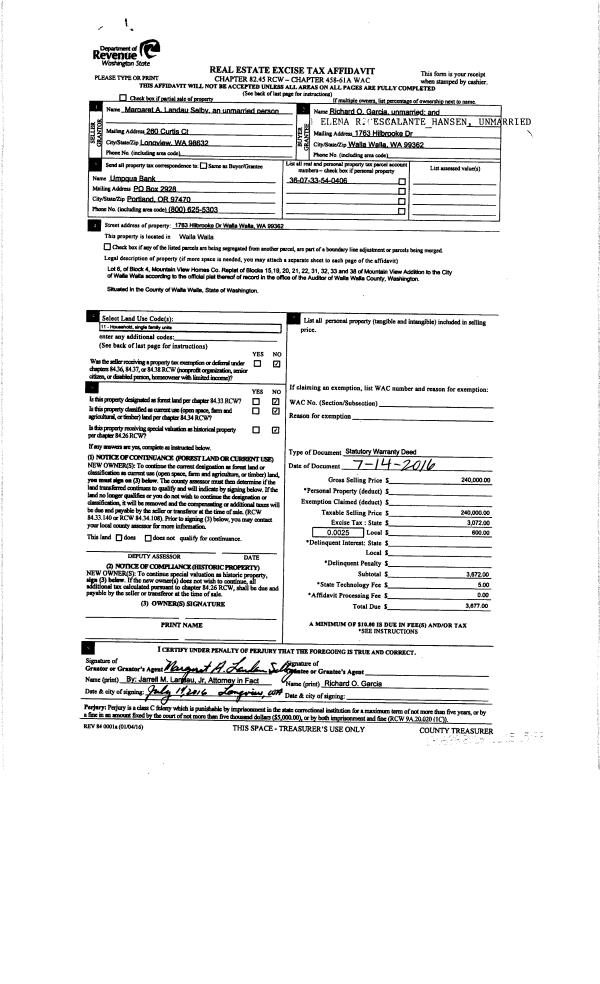 | 2 | 07/15/2016 | SWD | STATUTORY WARRANTY DEED | SELBY MARGARET A LANDAU | GARCIA RICHARD O | | | $240,000.00 | 130638 | 2016-05548 |