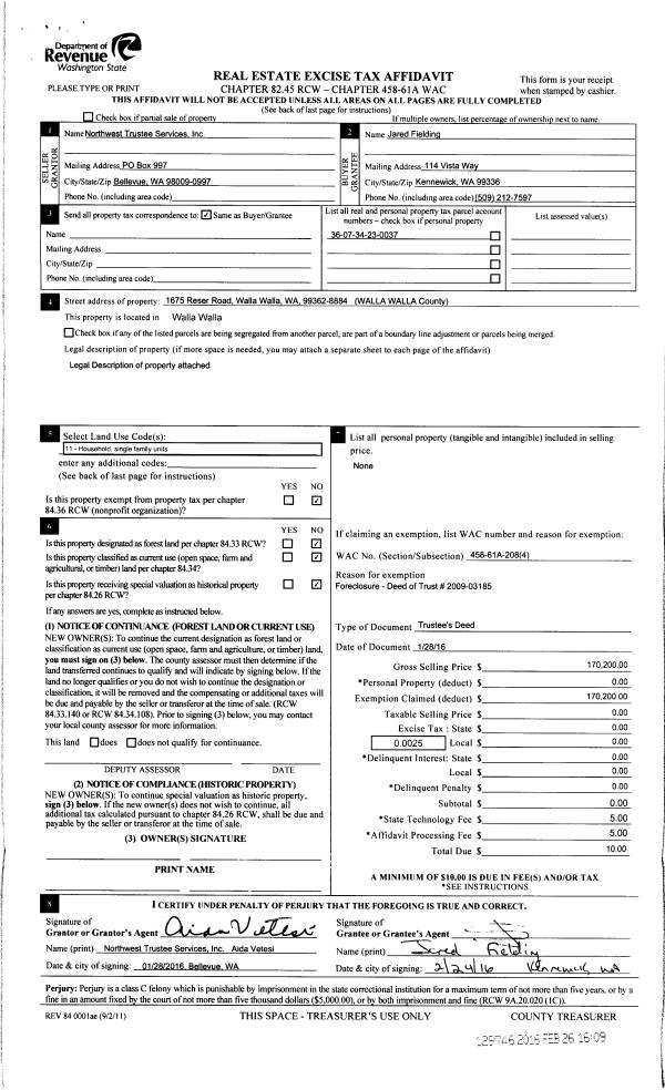 | 2 | 02/26/2016 | TRUSTEES D | TRUSTEE'S DEED | BIERMAN HOWARD & SHERRILL | FIELDING JARED | | | $170,200.00 | 129746 | 2016-01458 |