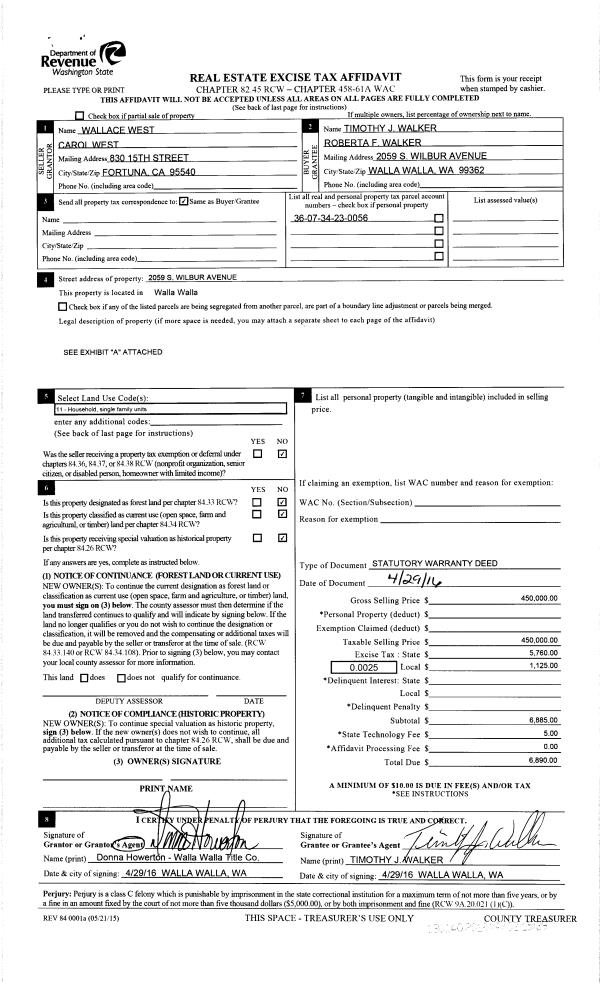 | 1 | 05/02/2016 | SWD | STATUTORY WARRANTY DEED | WEST WALLACE & CAROL | WALKER TIMOTHY J & ROBERTA F | | | $450,000.00 | 130140 | 2016-03279 |