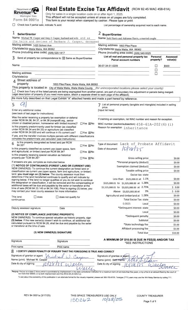 | 2 | 10/28/2025 | | | CASPER MICHAEL W & AMY J | HARRIS SETH & ADRIENNE | | | | 150262 | |