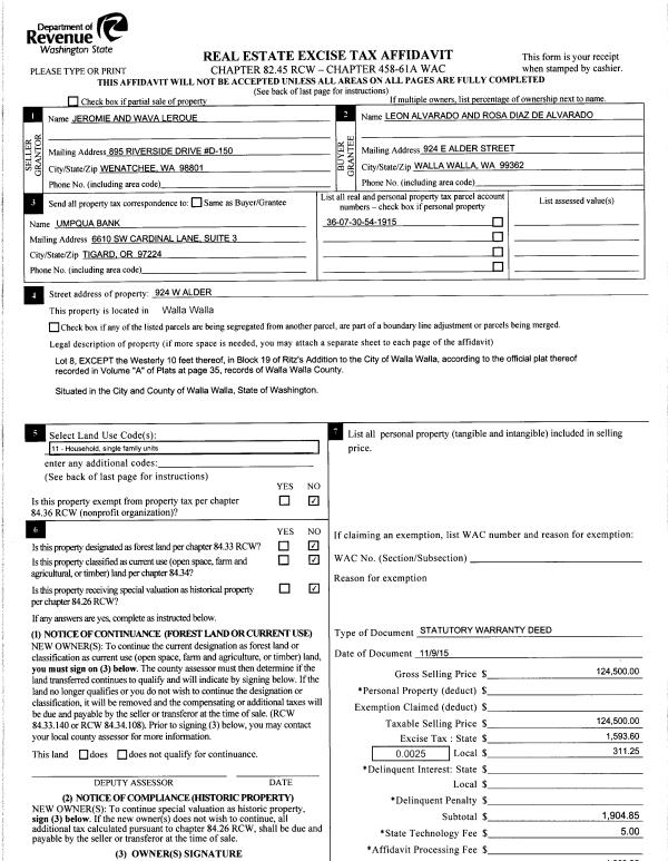 | Mailing Address: | ROSA DIAZ DE ALVARADO 924 W ALDER ST WALLA WALLA, WA 99362 | % Ownership: | 100.0000000000% |
