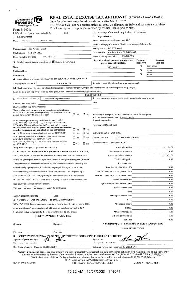 | Mailing Address: | 528 CAYUSE ST WALLA WALLA, WA 99362 | % Ownership: | 100.0000000000% |