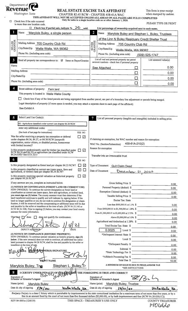 | 3 | 09/30/2021 | SWP | Special Warranty Deed | BAKER BOYER BANK TRUSTEES | SITTON GEORGANNA G ET AL | | 3-PARCLES | $0.00 | 142634 | 2021-12276 |