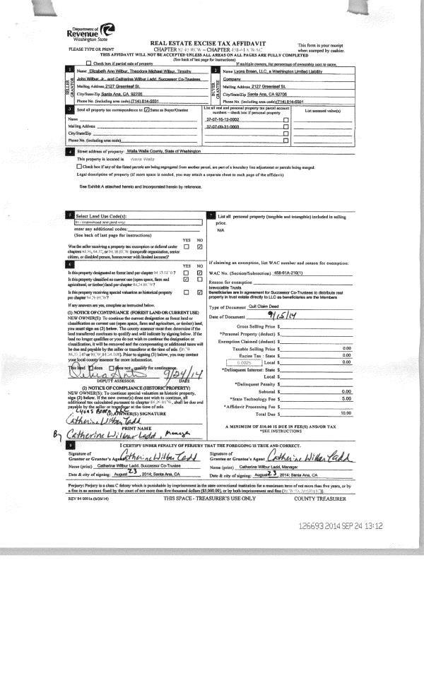 | 5 | 12/08/2014 | QCD | QUIT CLAIM DEED | WILBUR MARY L BREEN ETAL | LYONS BREEN LLC | | | | 126693 | 2014-07001 |