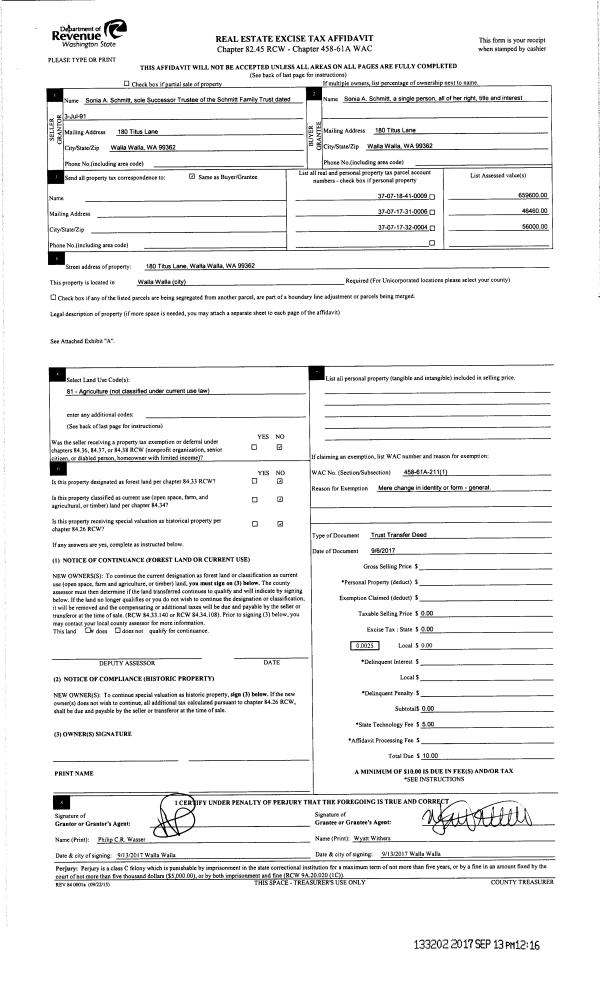 | Mailing Address: | 180 TITUS LANE WALLA WALLA, WA 99362 | % Ownership: | 100.0000000000% |