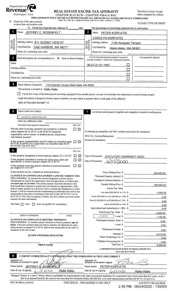 | 1 | 06/24/2020 | SWD | STATUTORY WARRANTY DEED | ROSENFELT JEFFREY C | KORFIATIS PETER & CAROLYN | | | $450,000.00 | 139354 | 2020-05817 |