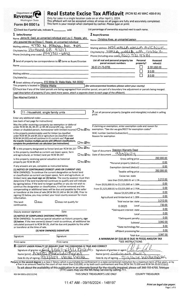 | Mailing Address: | ELISSA C REGELE 415 WHITE ST WALLA WALLA, WA 99362 | % Ownership: | 100.0000000000% |