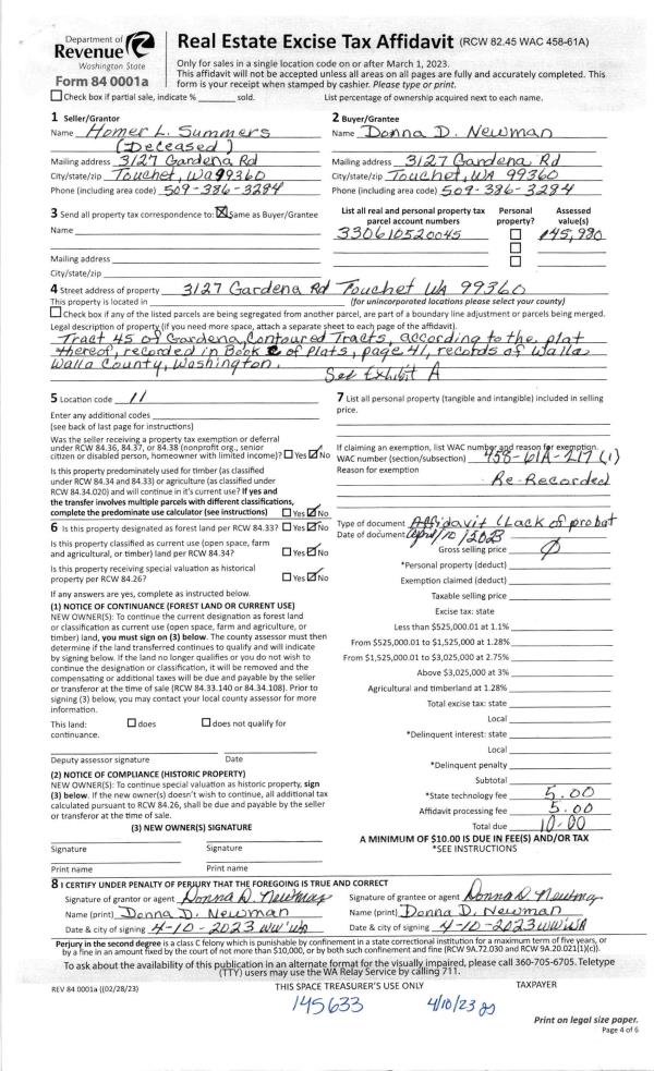 | 2 | 04/10/2023 | LOPA | LACK OF PROBATE AFFIDAVIT | SUMMERS HOMER L ESTATE OF | SUMMERS HOMER L ESTATE OF | | | | 145633 | 2023-01841 |