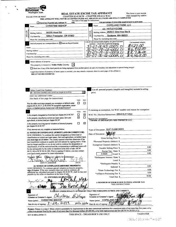 | 1 | 05/10/2005 | QCD | QUIT CLAIM DEED | COPELAND, B LAURINE TRUST | COPELAND, B LAURINE TRUST | | | | 107436 | 2005-05509 |